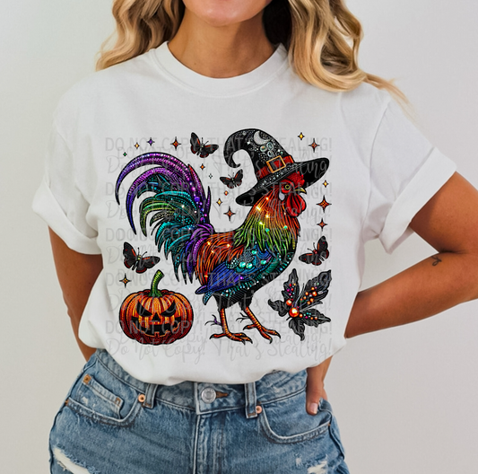 Witchy Rooster Faux Rhinestone Faux Embroidery DTF Transfer Film