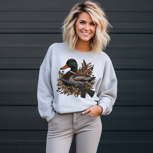Hunting Duck Faux Embroidered Faux Rhinestone DTF Transfer Film SDD084