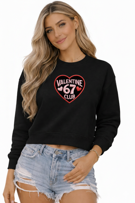 Valentine Club 67 Cropped Sweatshirt – Faux Embroidery Valentine Design