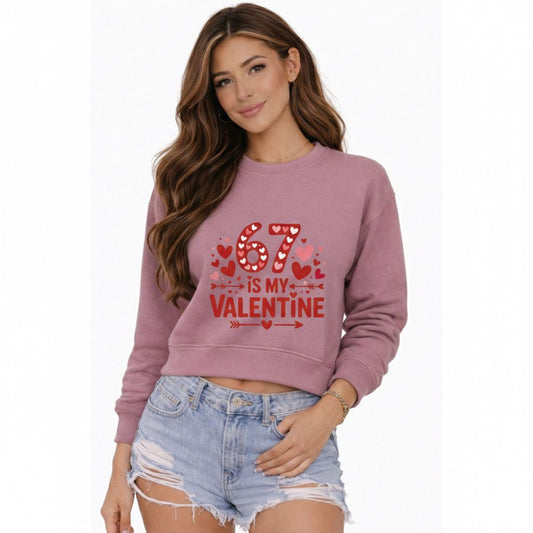 6 7 Is My Valentine Cropped Crew Sweatshirt – Valentine’s Day Edition