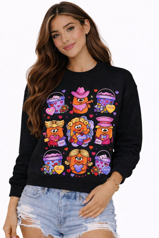 Valentine’s Day Munchkin Nuggets Cropped Sweatshirt – Cute Faux Embroidery Design
