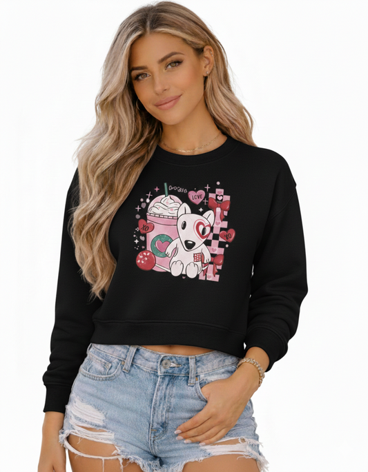 Women’s Cropped Crewneck Sweatshirt – Bella+Canvas 7503 | Valentine Frappe Dog (TG124)