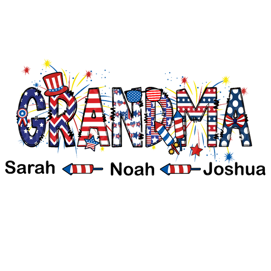 Customized it! July 4th Grandma with Grandchild Name, Up to 5 Names Transfer Film 5015