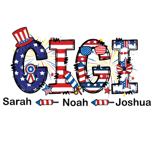 Customized it! July 4th GiGi with Grandchild Name, Up to 5 Names Transfer Film 5016