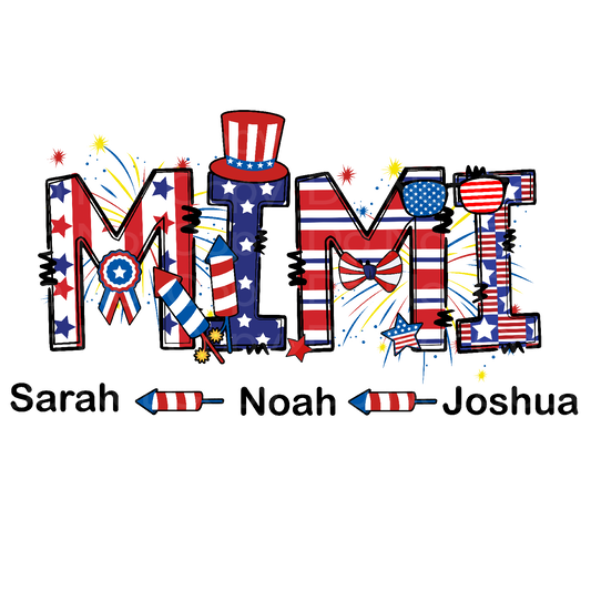 Customized it! July 4th Mimi with Grandchild Name, Up to 5 Names Transfer Film 5014