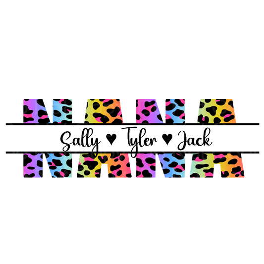 Customized it! Rainbow Cheetah Nana with Kid(s) Name, Up to 5 Names Transfer Film 5022