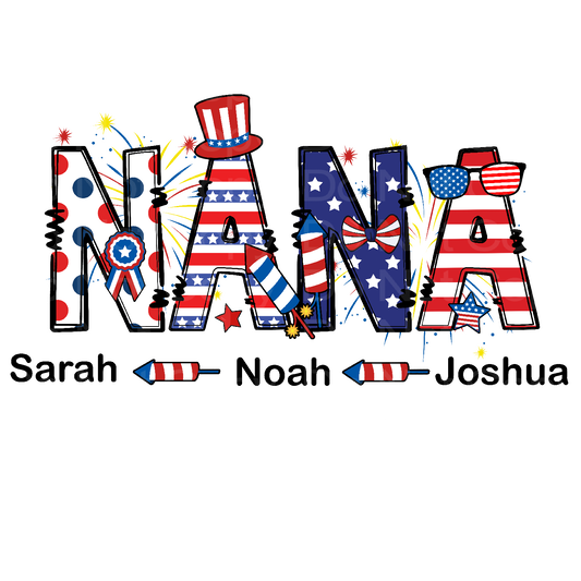 Customized it! July 4th NaNa with Grandchild Name, Up to 5 Names Transfer Film 5017