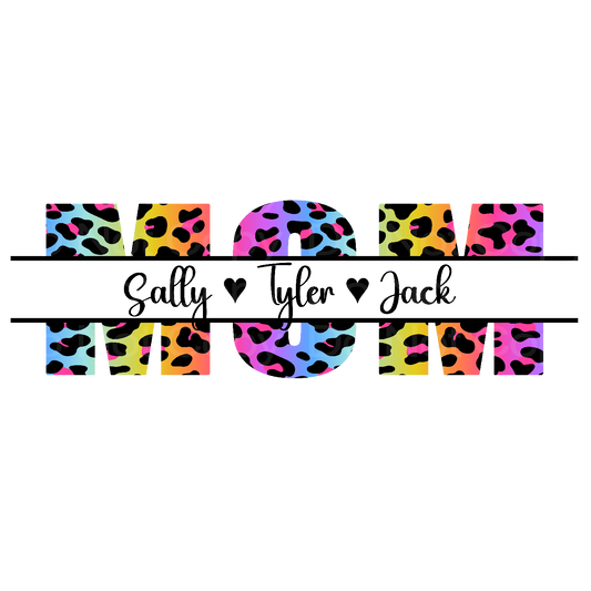 Customized it! Rainbow Cheetah MOM with Kid(s) Name, Up to 5 Names Transfer Film 5020