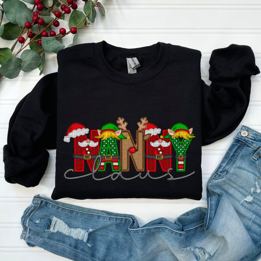Christmas Nanny Claus Family Matching Faux Embroidery DTF Transfer Film SD084