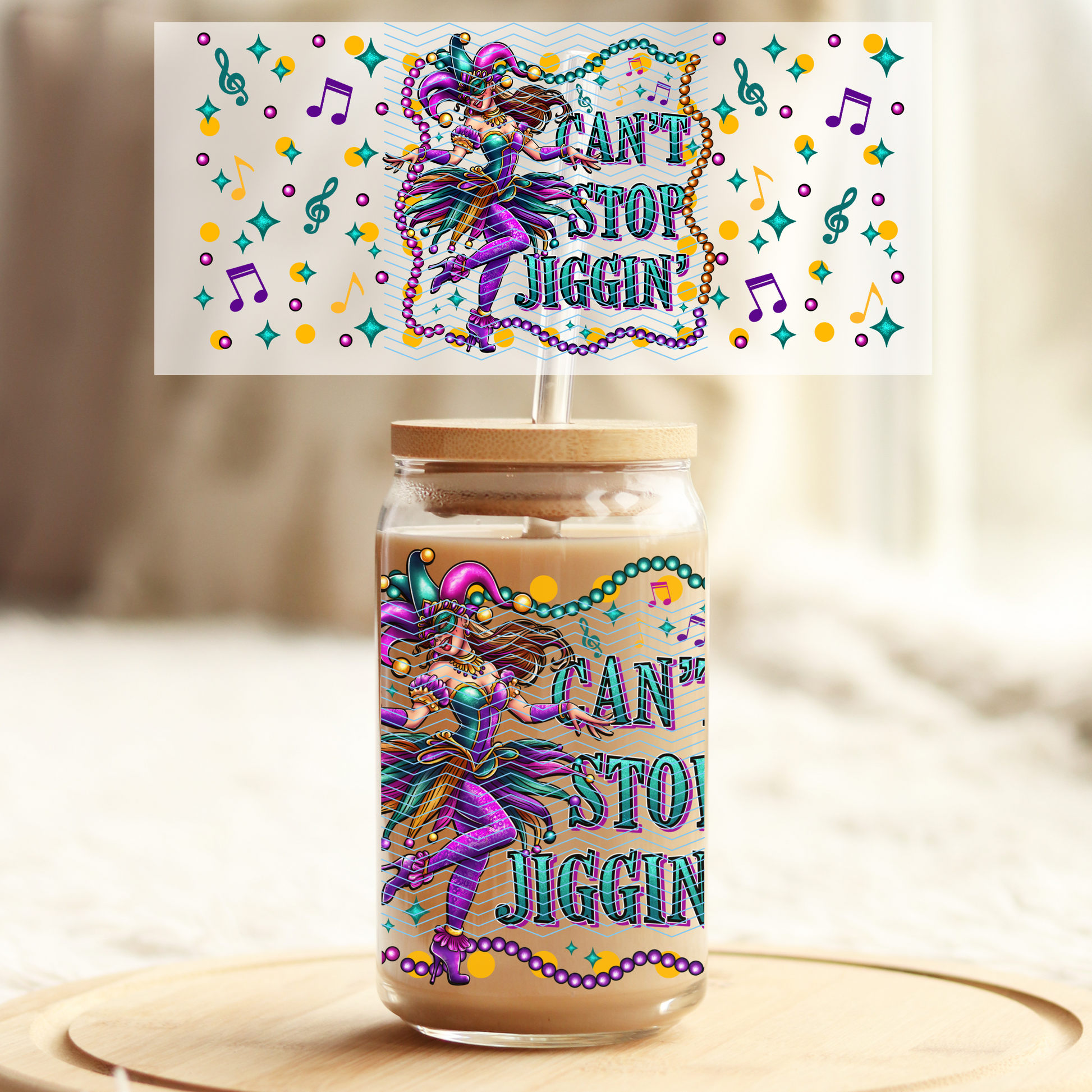 Can't stop Jiggin Mardi Grads Girl - 16oz Glass UV DTF Transfer Film