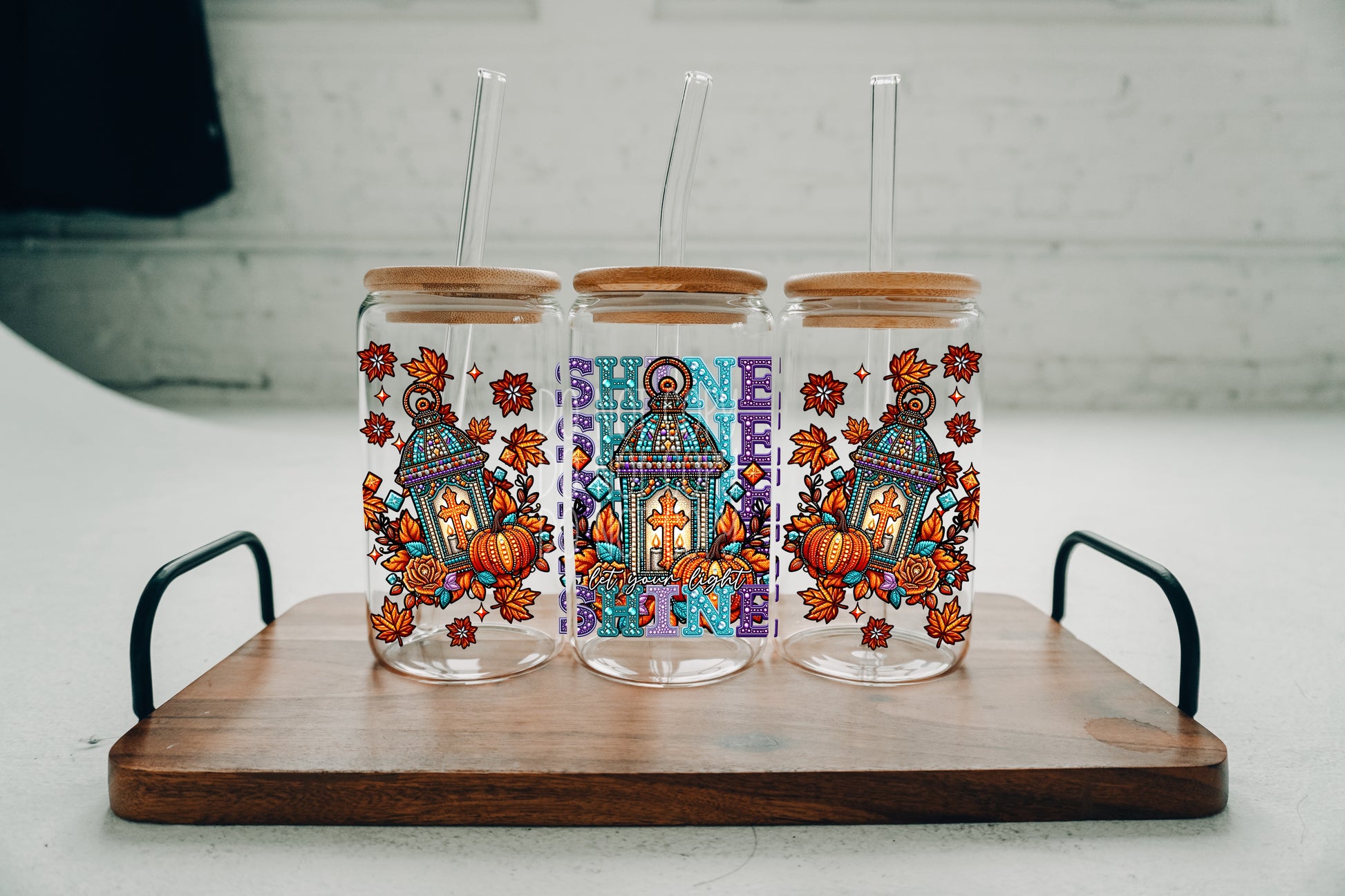 Faux Rhinestone Let it Shine Cross Lantern - 16oz UV DTF Transfer Film