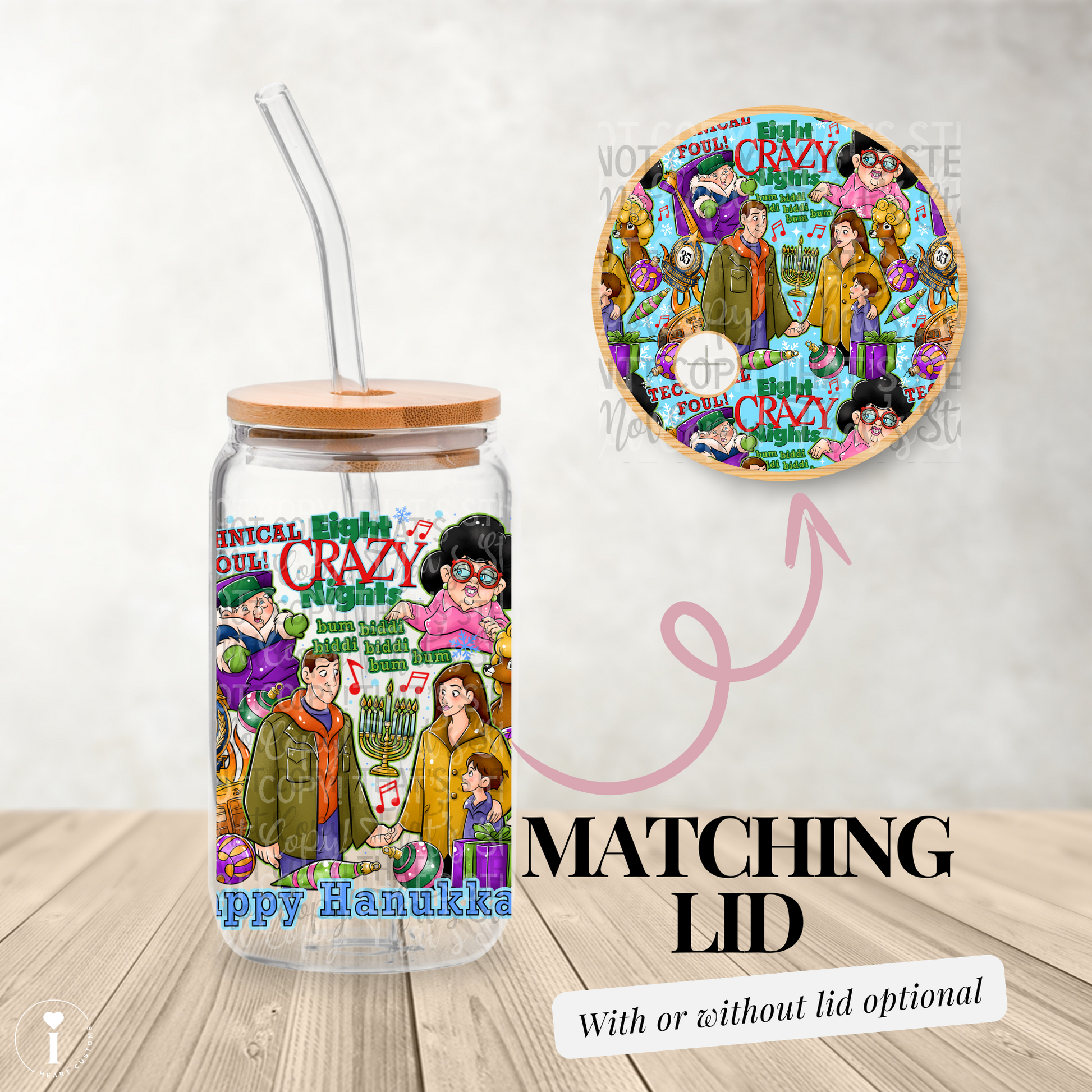 Happy Hanukkah - 16oz UV DTF Transfer Film Wrap and Matching Lid G104