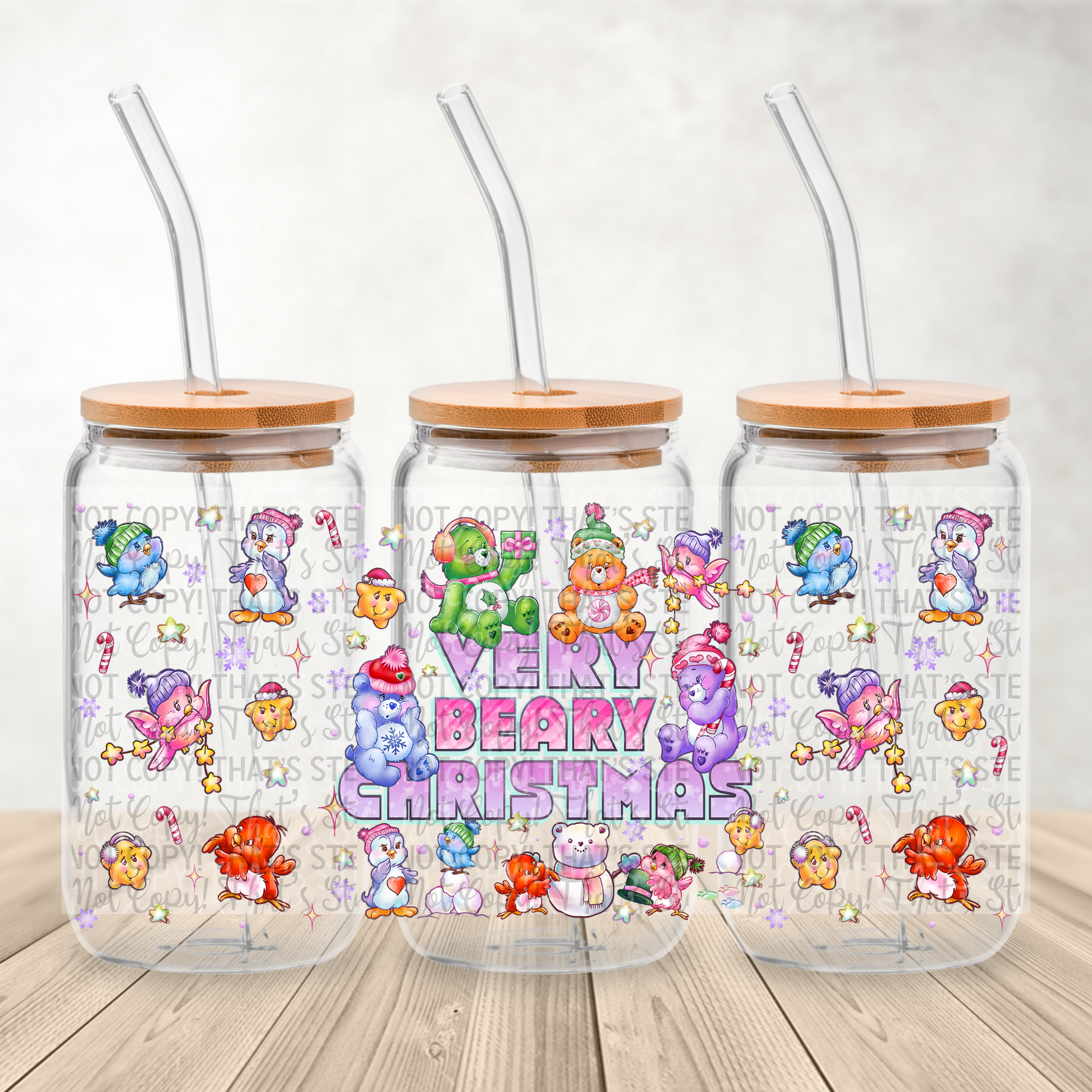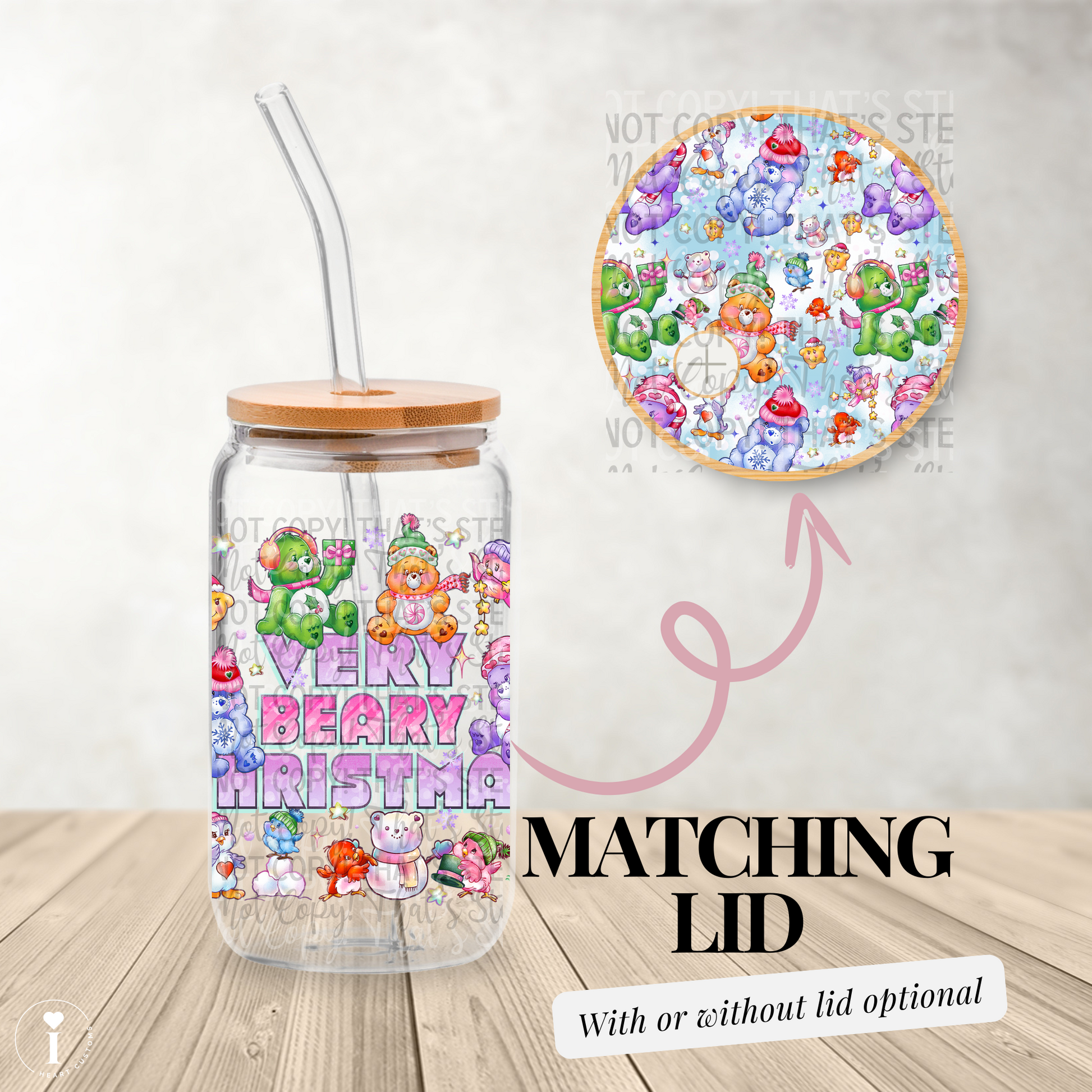 Very Berry Christmas Bear - 16oz UV DTF Transfer Film Wrap and Matching Lid G114
