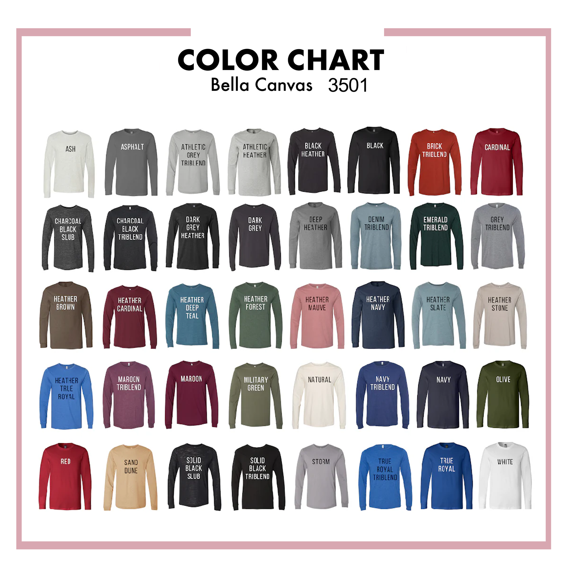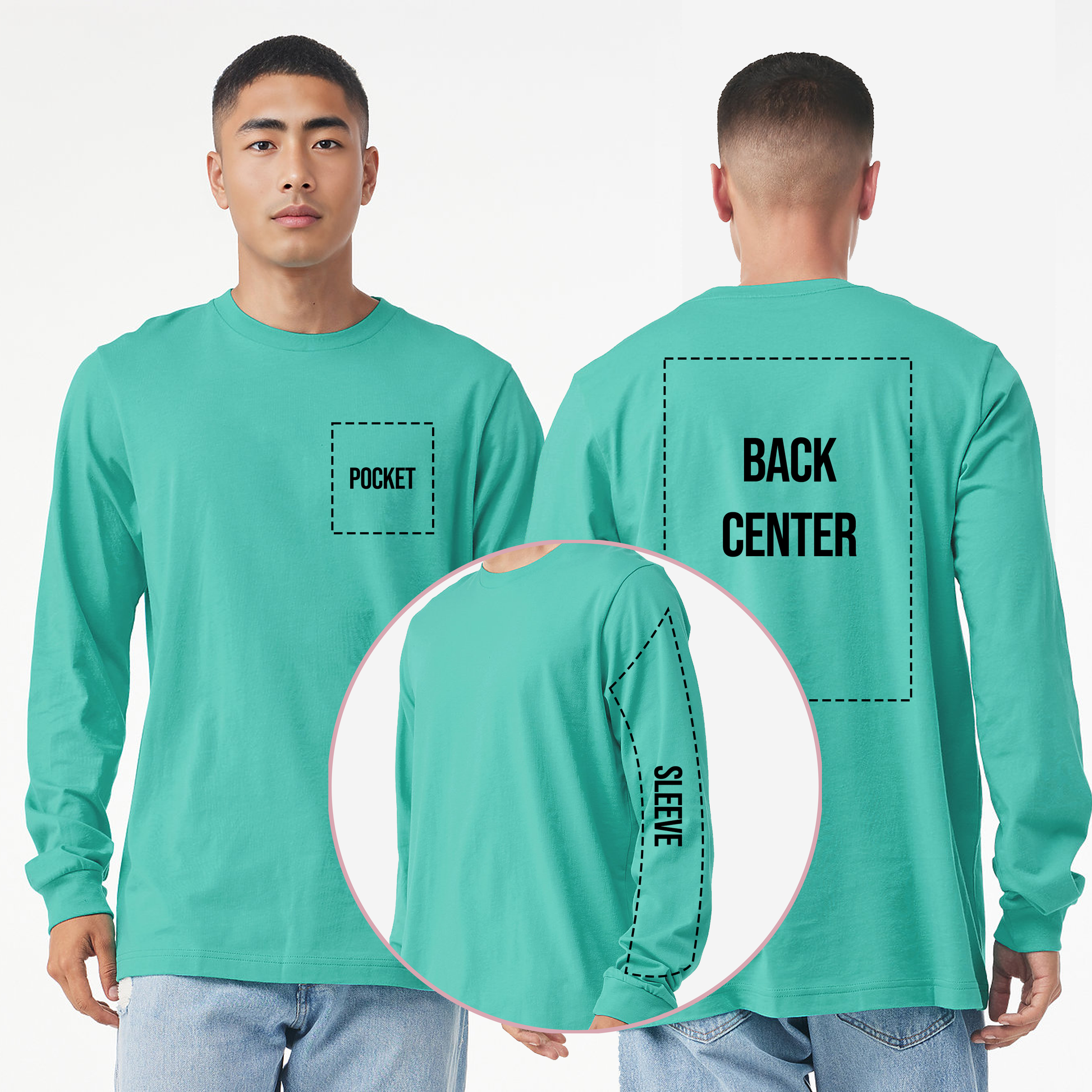 Our Bella + Canvas 3501 long sleeve t‑shirts combine comfort, style, and durability with a modern fit. Crafted from soft premium cotton, these shirts are perfect for cooler weather, business branding, custom apparel, team events, or casual everyday wear. With full‑color printing options available, you can showcase your logo, artwork, or message on a high‑quality long sleeve blank trusted across the apparel industry. Whether you’re looking for single location prints or double‑sided designs, we deliver fast turnaround times and professional results. A top choice for anyone searching for custom long sleeve t‑shirts, Bella Canvas printing, or personalized apparel.
