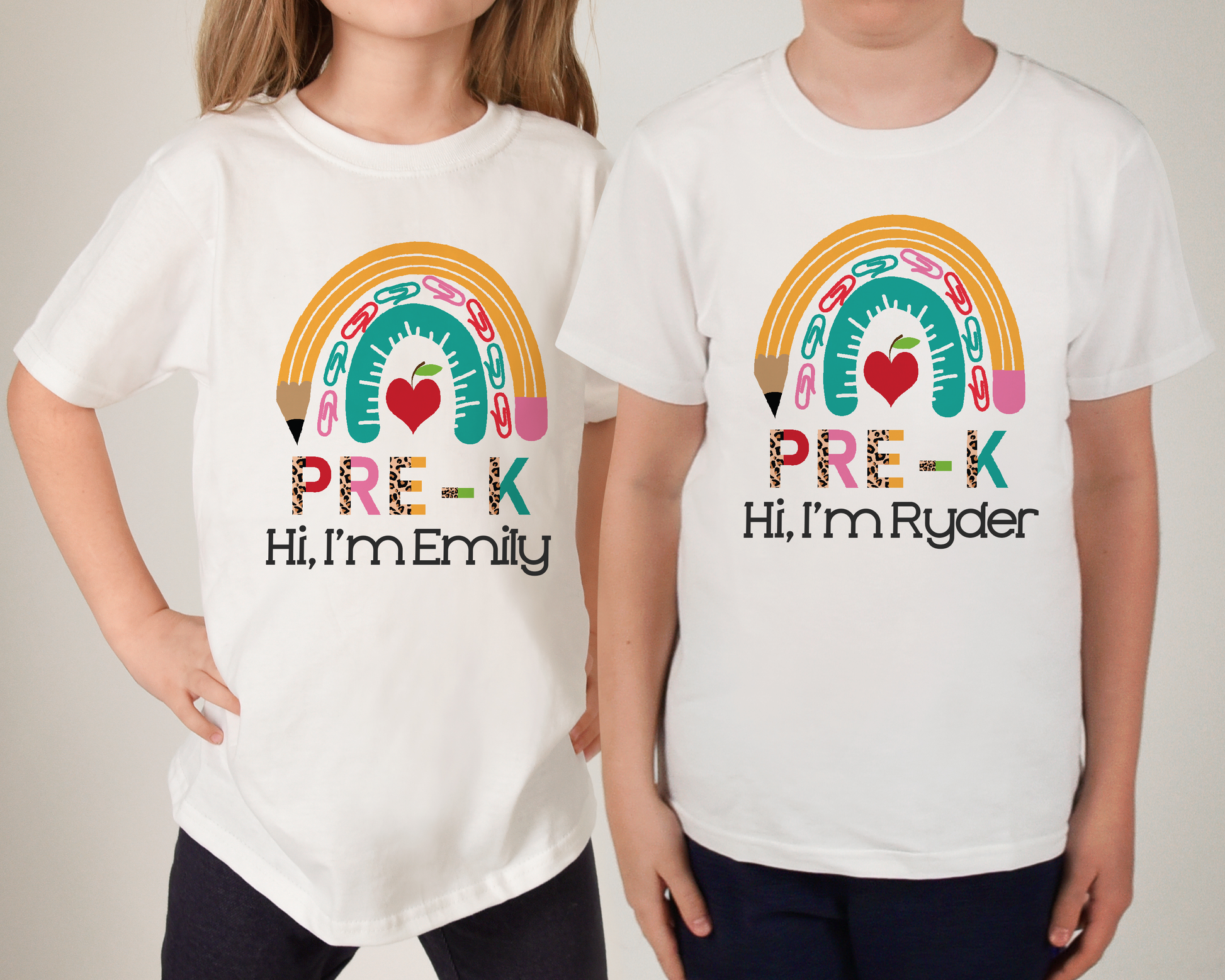 Personalized School Grade Pencil Rainbow with Name Youth Tee