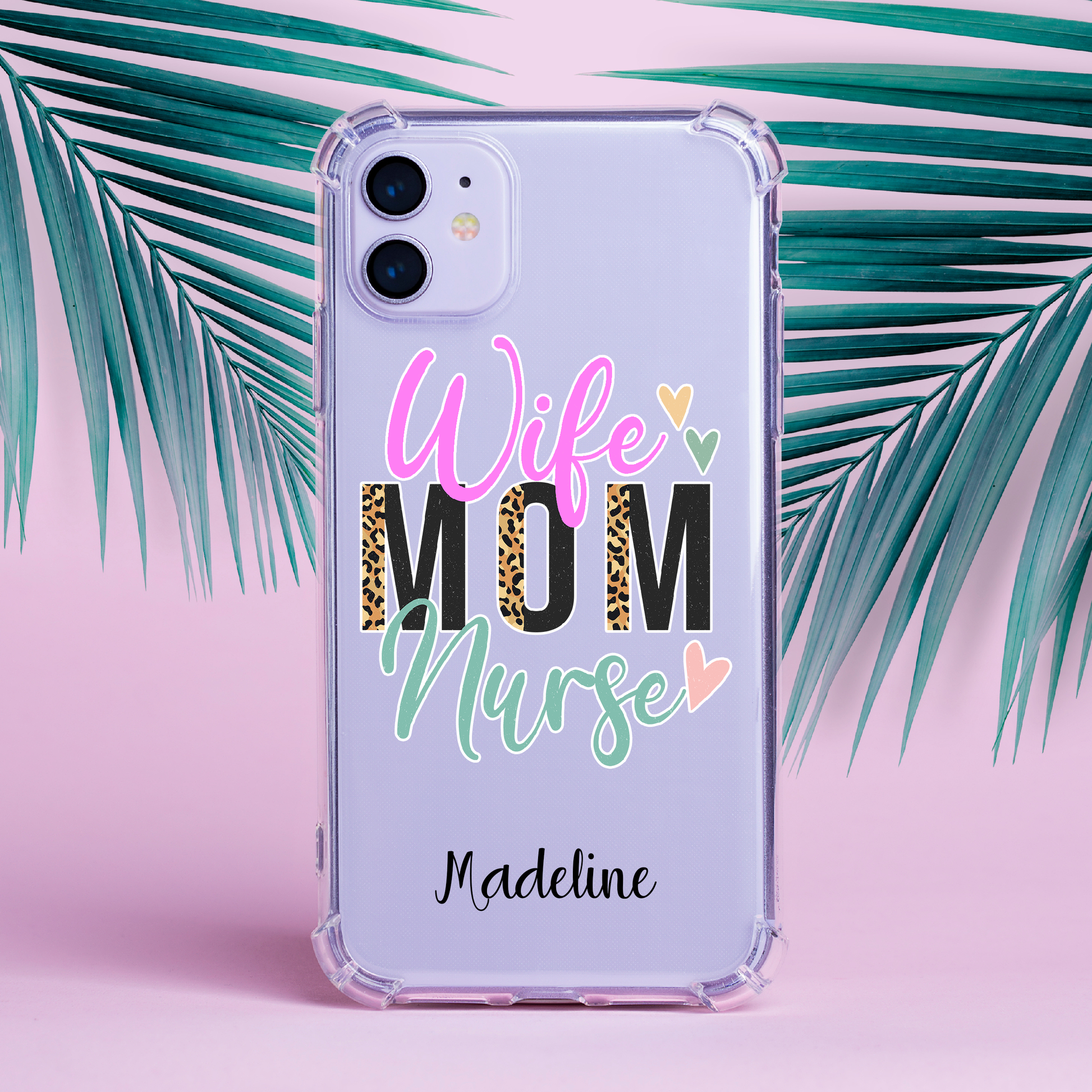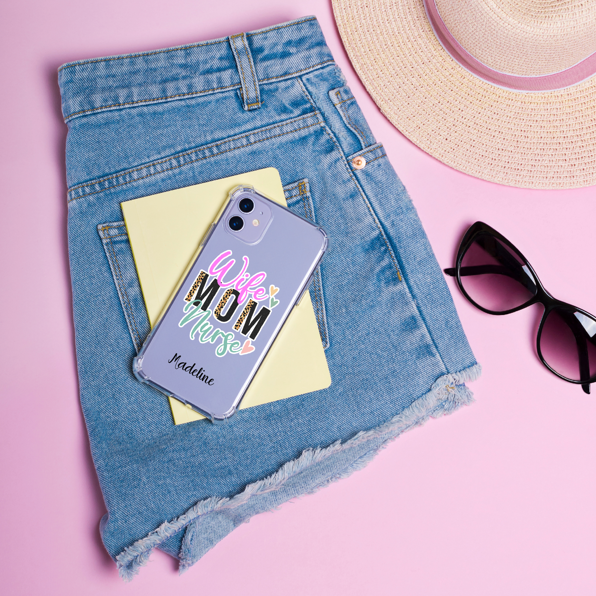 Personalized Wife Mom Nurse with name Clear Bumper Case