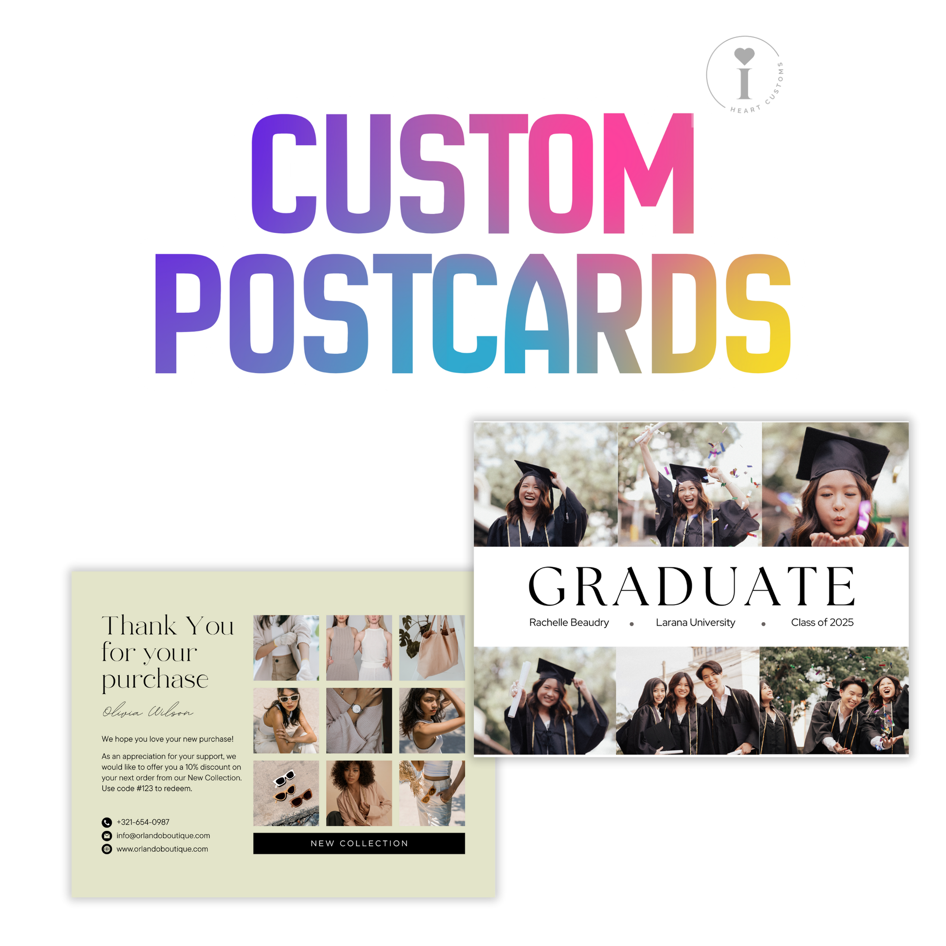 At iHeartCustoms, we make it easy to bring your vision to life with beautiful prints that represent your brand — because first impressions matter.