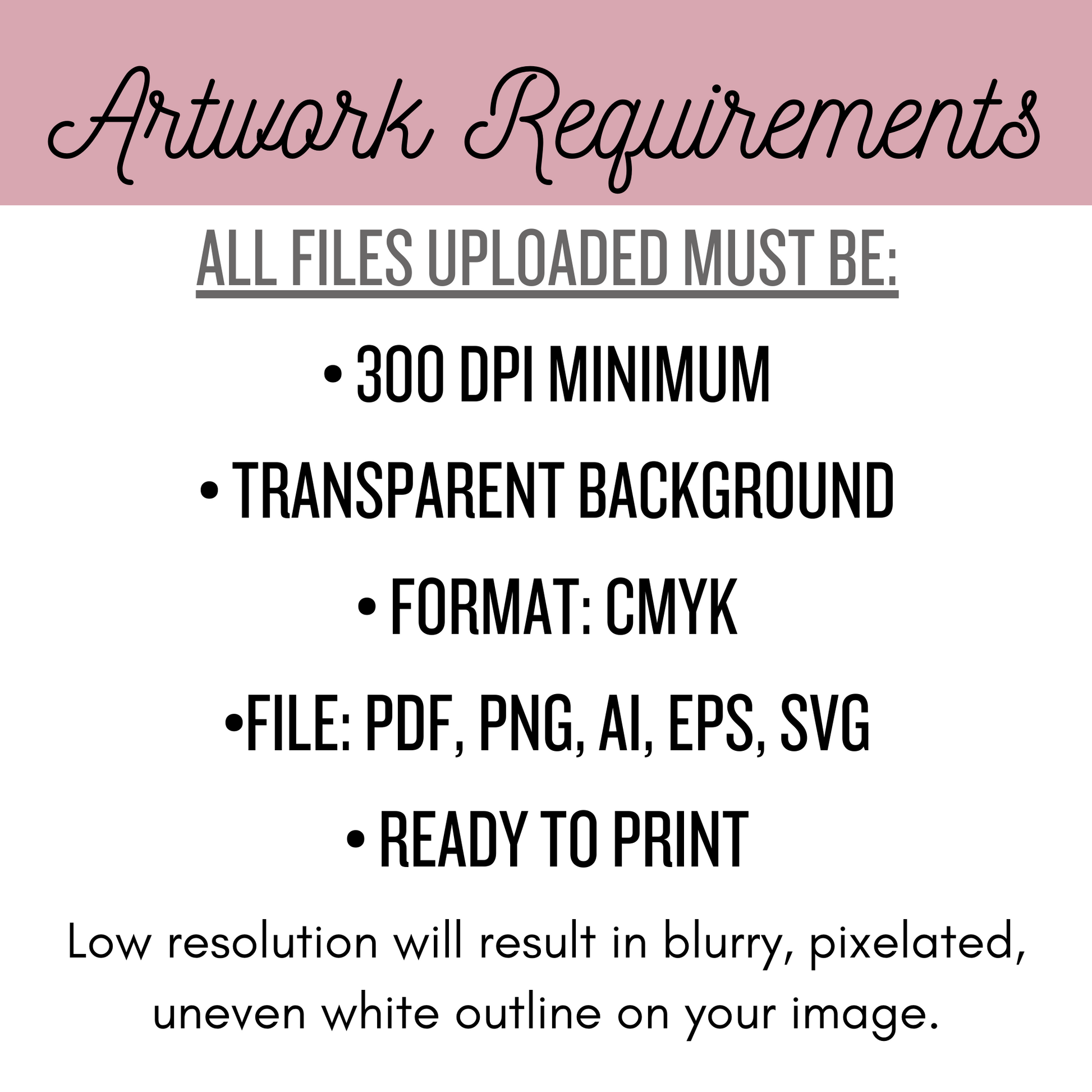 - Files MUST be MINIMUM 300dpi with a transparent background