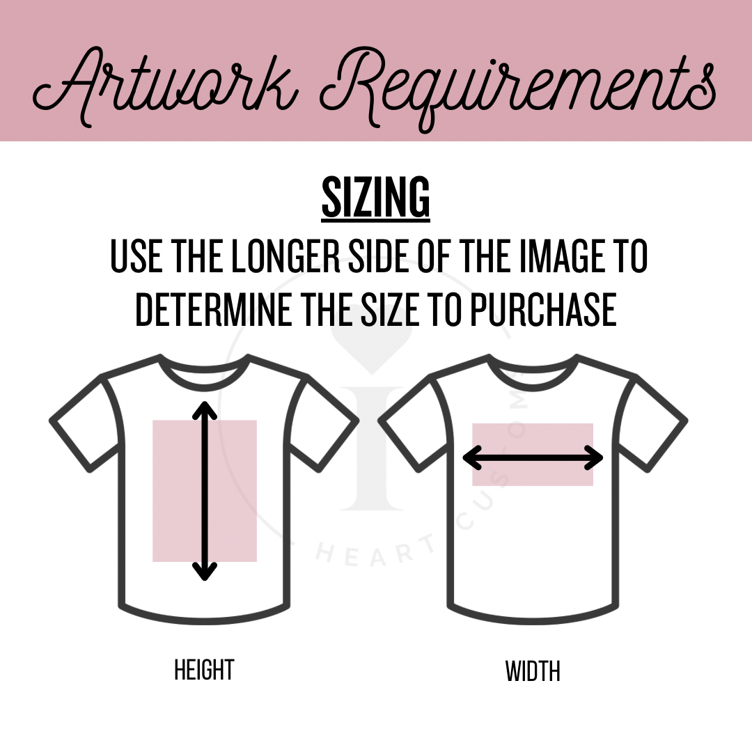 - Check your image size according to the garment size you’re pressing on. If you need help with sizing, feel free to message us. We will print according to the size uploaded.