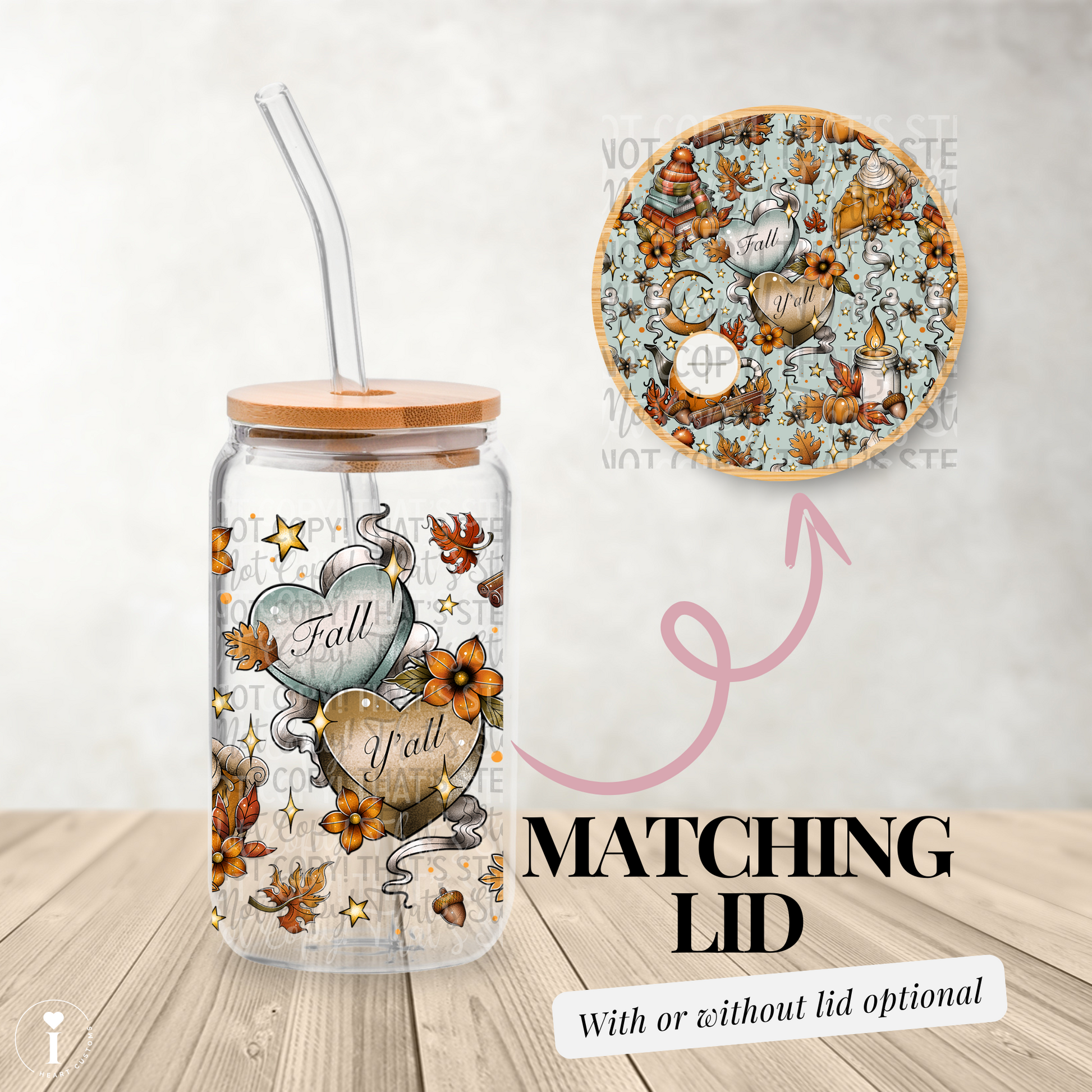 Fall Y’all light blue - 16oz UV DTF Transfer Film Wrap and Matching Lid G104