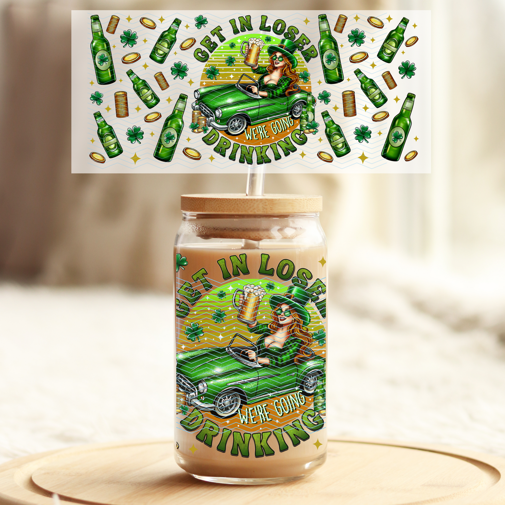Get in Loser - St Patty - Tone2 - 16oz Glass UV DTF Transfer Film