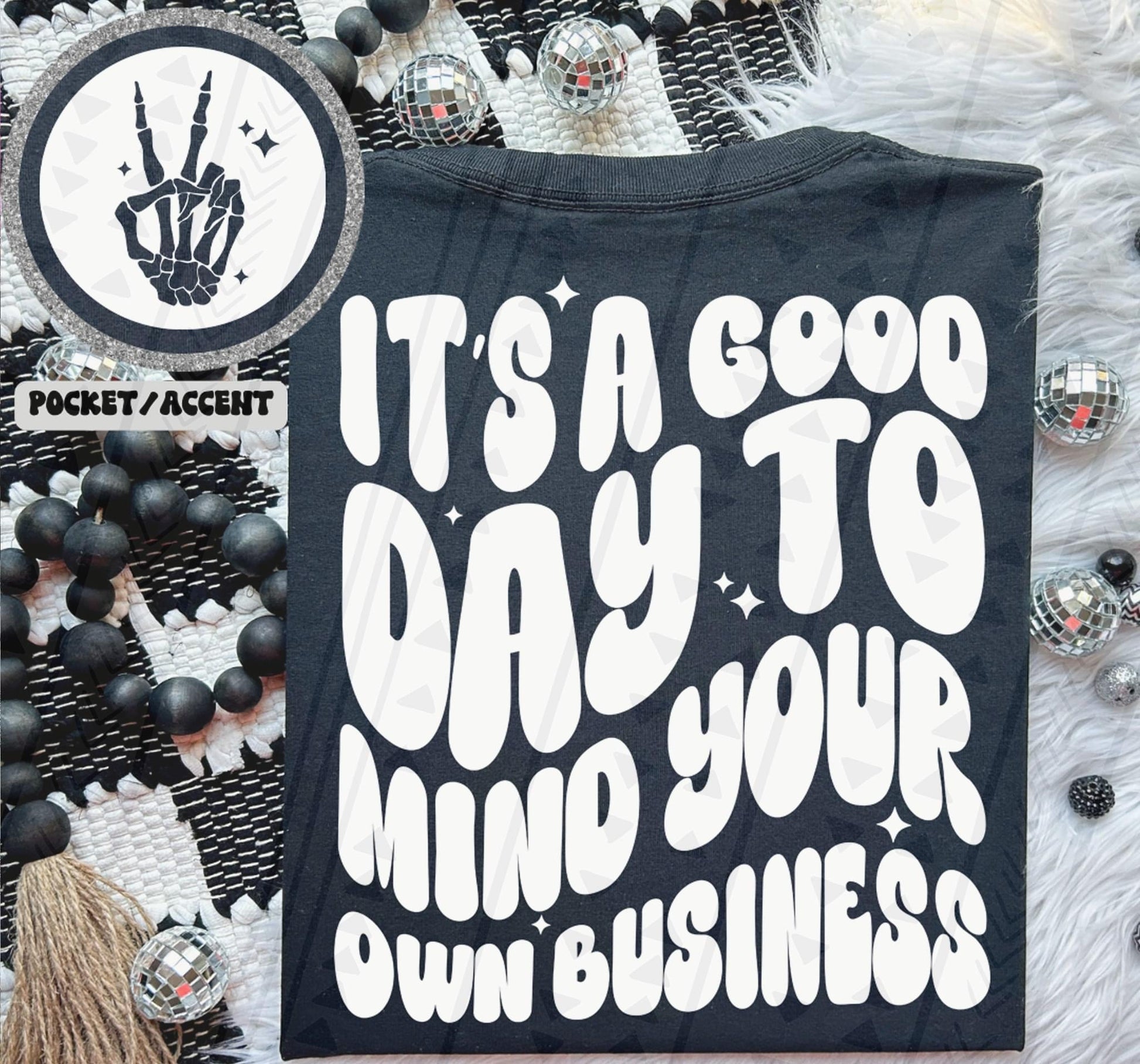 It’s a good day to mind your own business - White - with matching front pocket DTF Transfer Film
