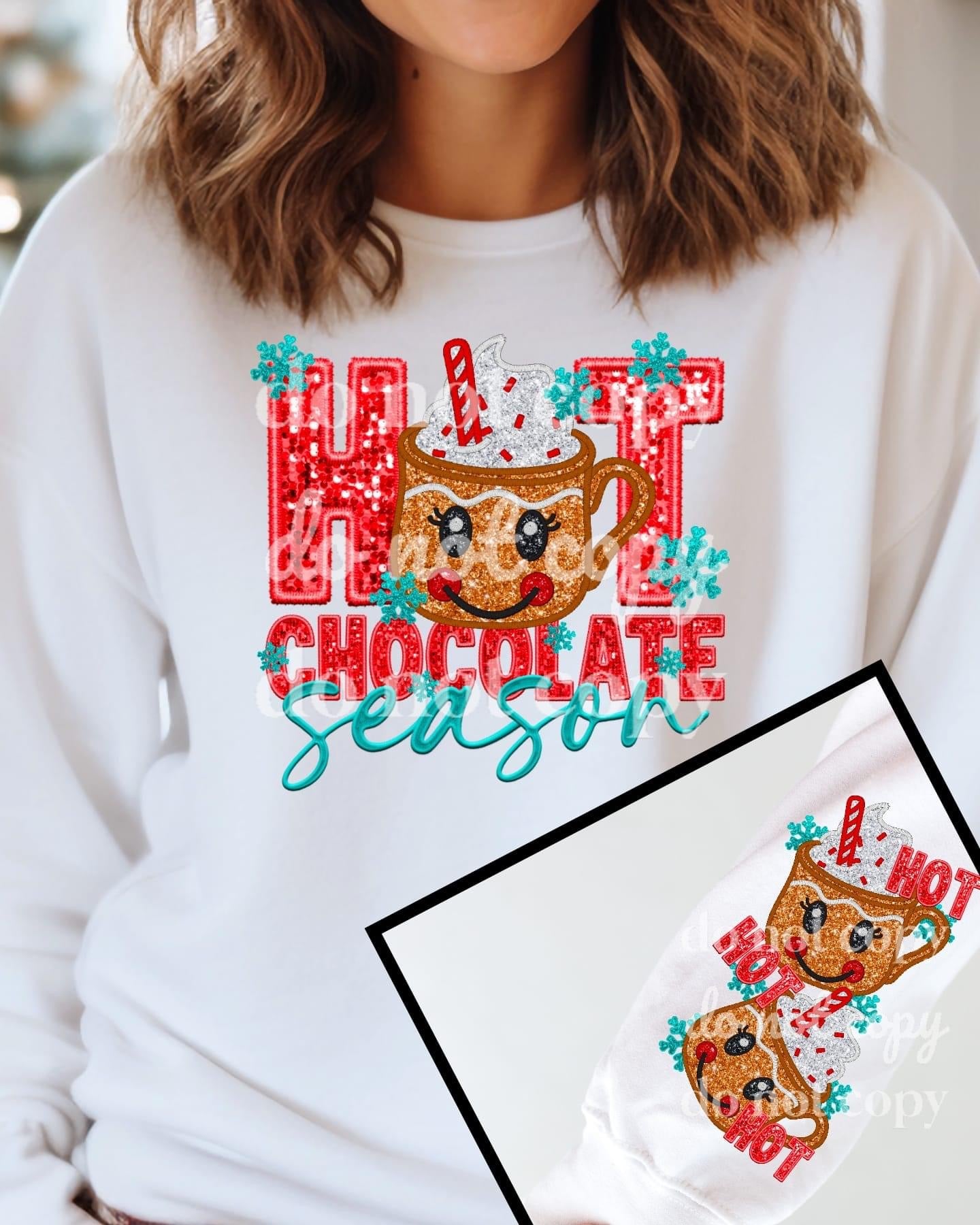 Matching DTF Series - Front & Sleeve - Faux Sequin & Embroidered Hot Chocolate Season