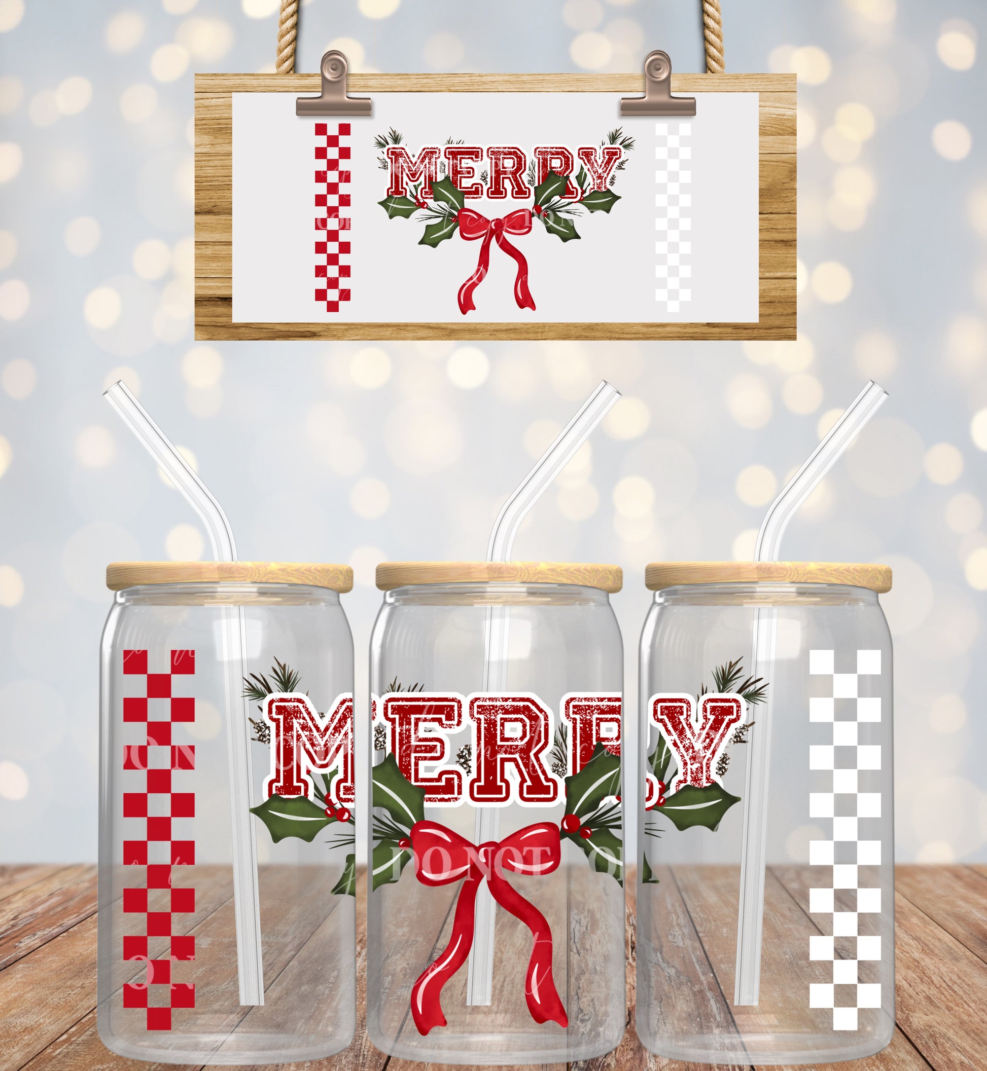 Merry Bow red and white Checkered 16oz UV DTF Transfer Film L114