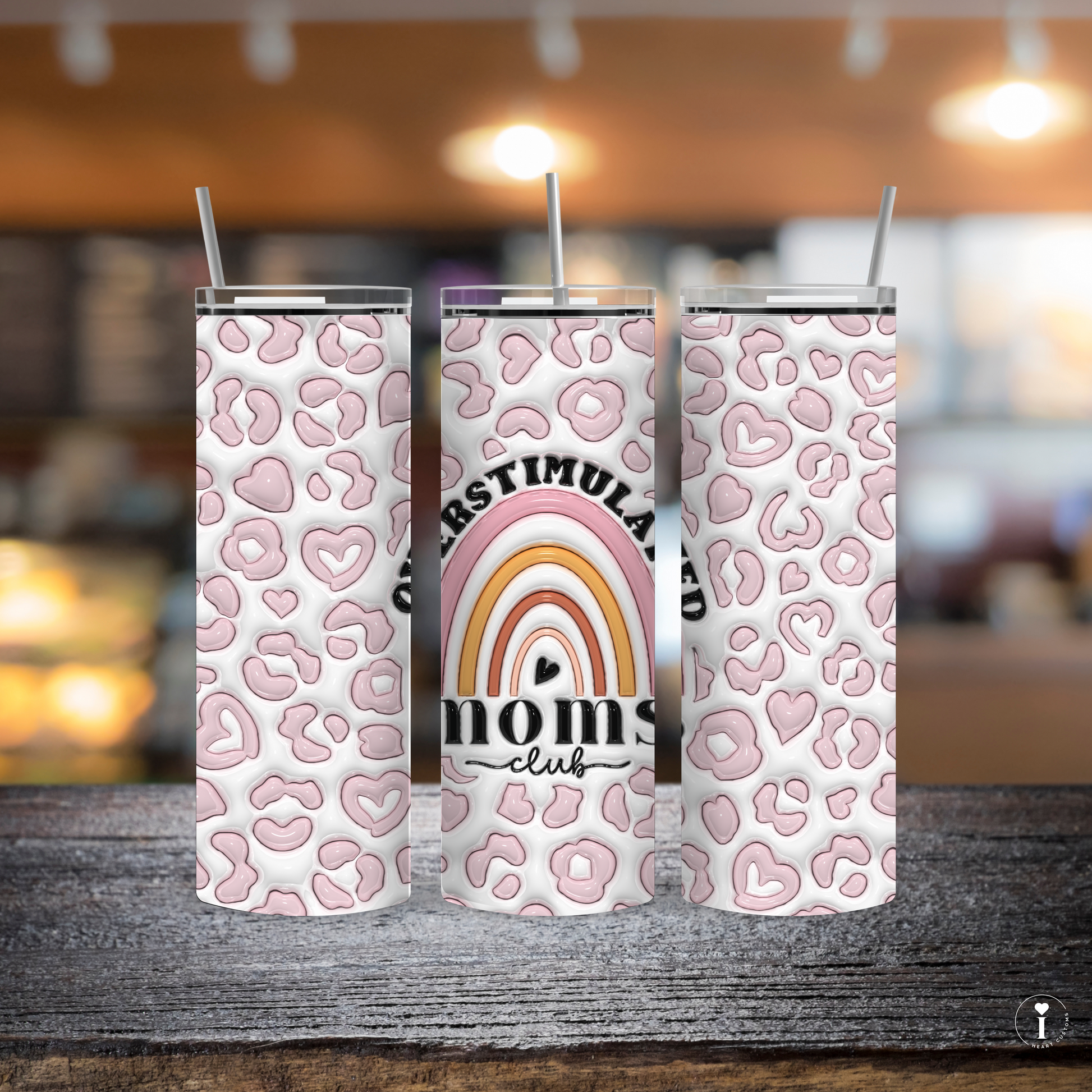 3D Designed Overstimulated Moms Club Pink Leopard Sublimation 20oz Straight Insulated Tumbler