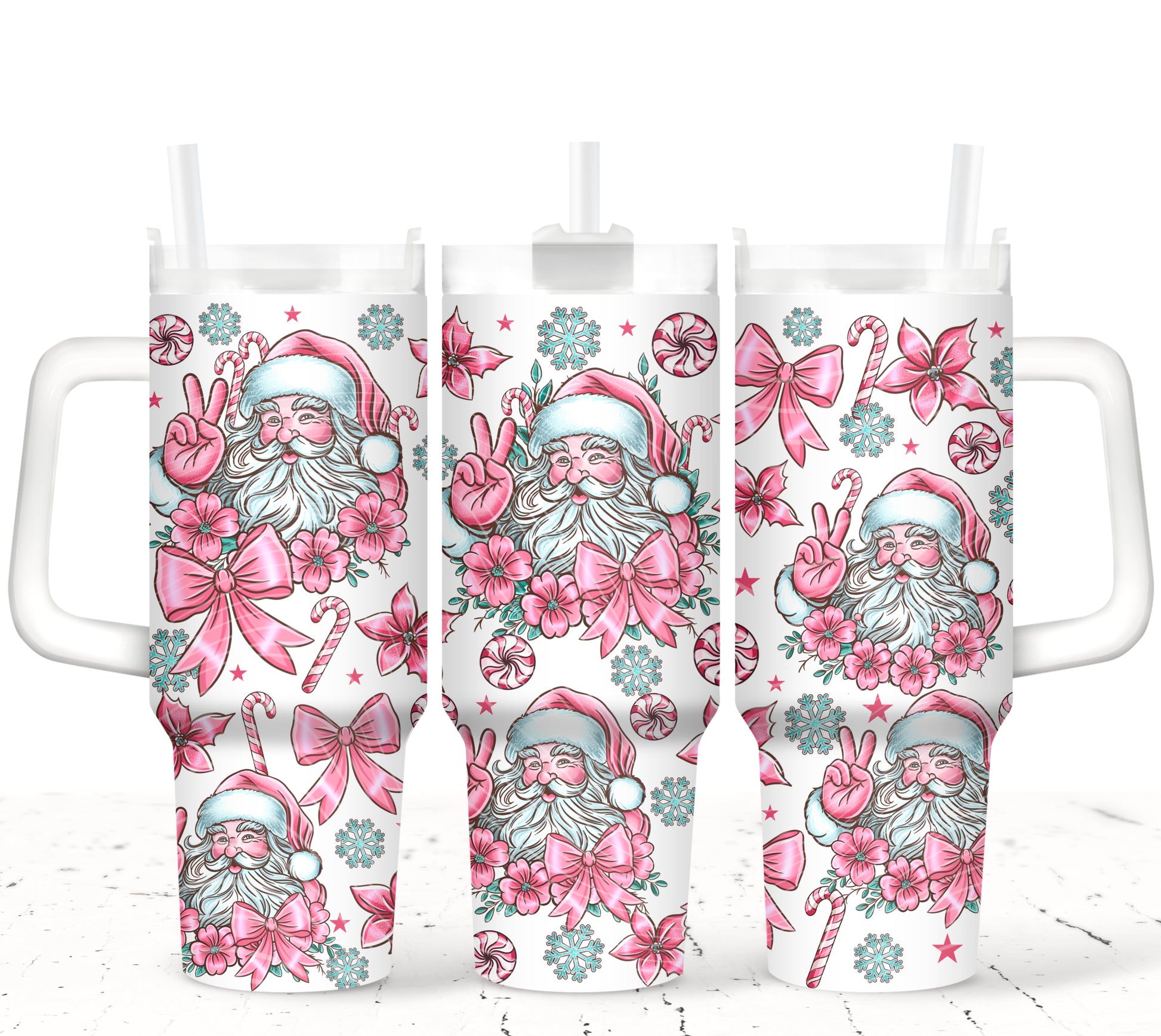 Pink Santa - TOP & BOTTOM SET - 40 oz Tumbler UV DTF Transfer Film A104