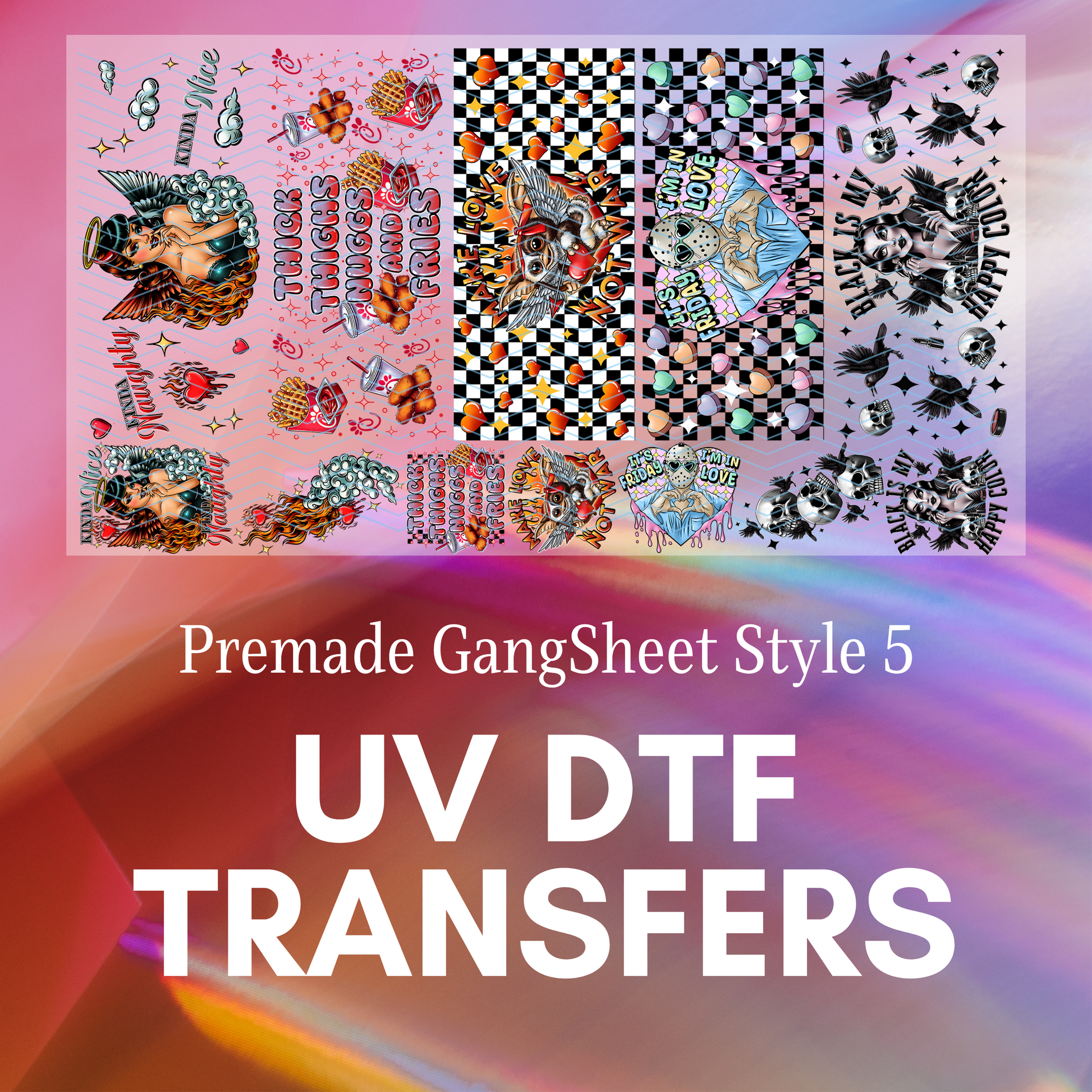 2. Ready to Print: Say goodbye to the hassle of searching for and choosing individual designs. Our Premade UV DTF Gang Sheet comes with a complete set of designs, so there's no need for substitutions. Simply pick your quantity of sheet(s), add to cart, and let the creativity flow!