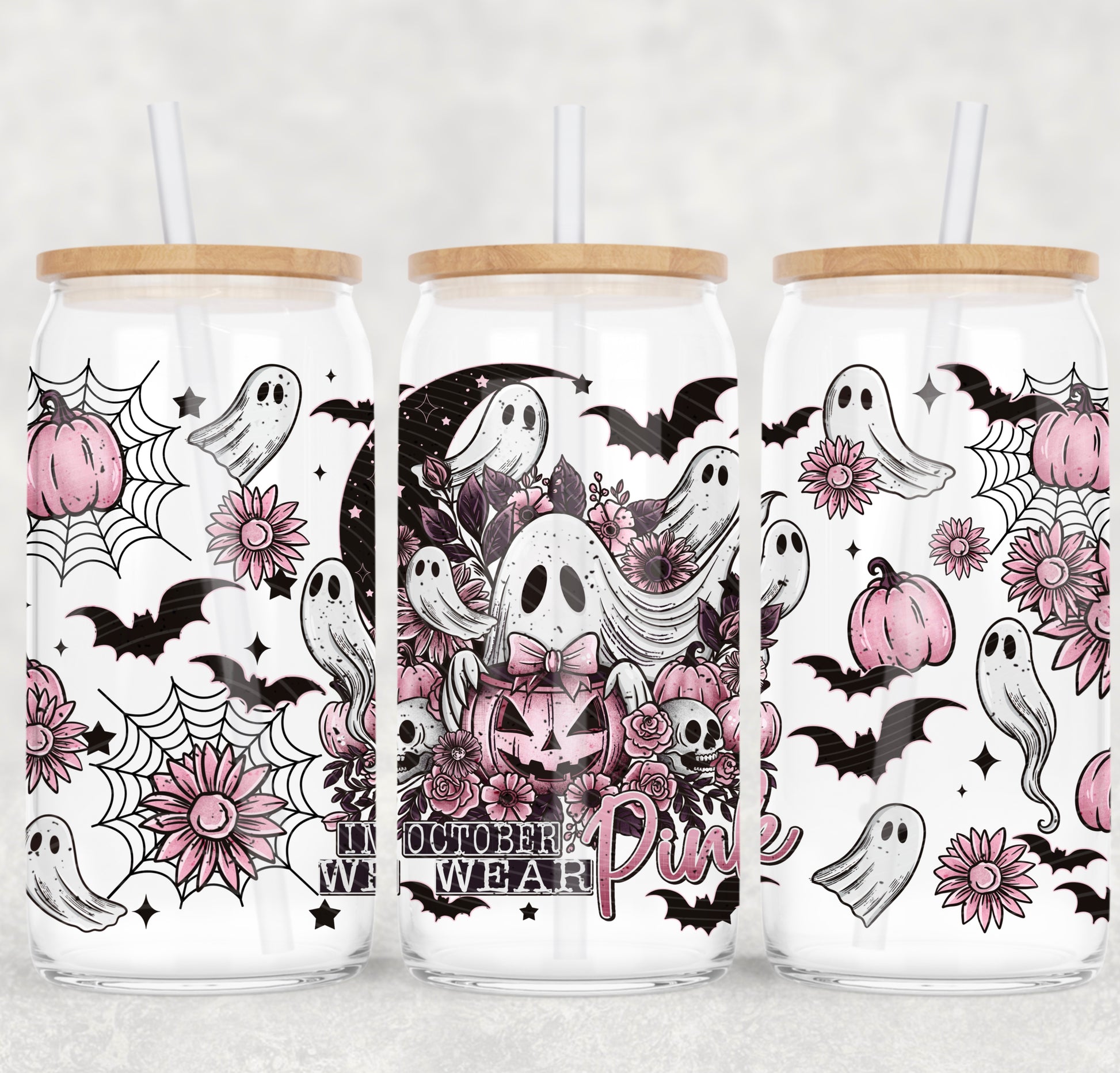Spooky Ghouls in October we wear pink - 16oz UV DTF Transfer Film A094
