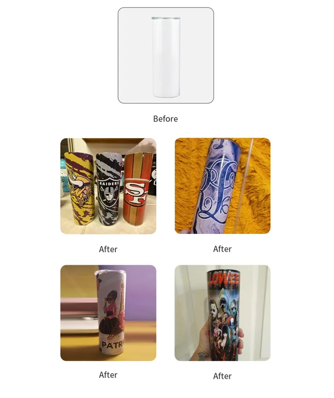 - Completely Straight: Our sublimation skinny tumbler is completely straight not tapered, which is easy to make the full wrap sublimation print by mug tumbler press machine or sublimation oven.
