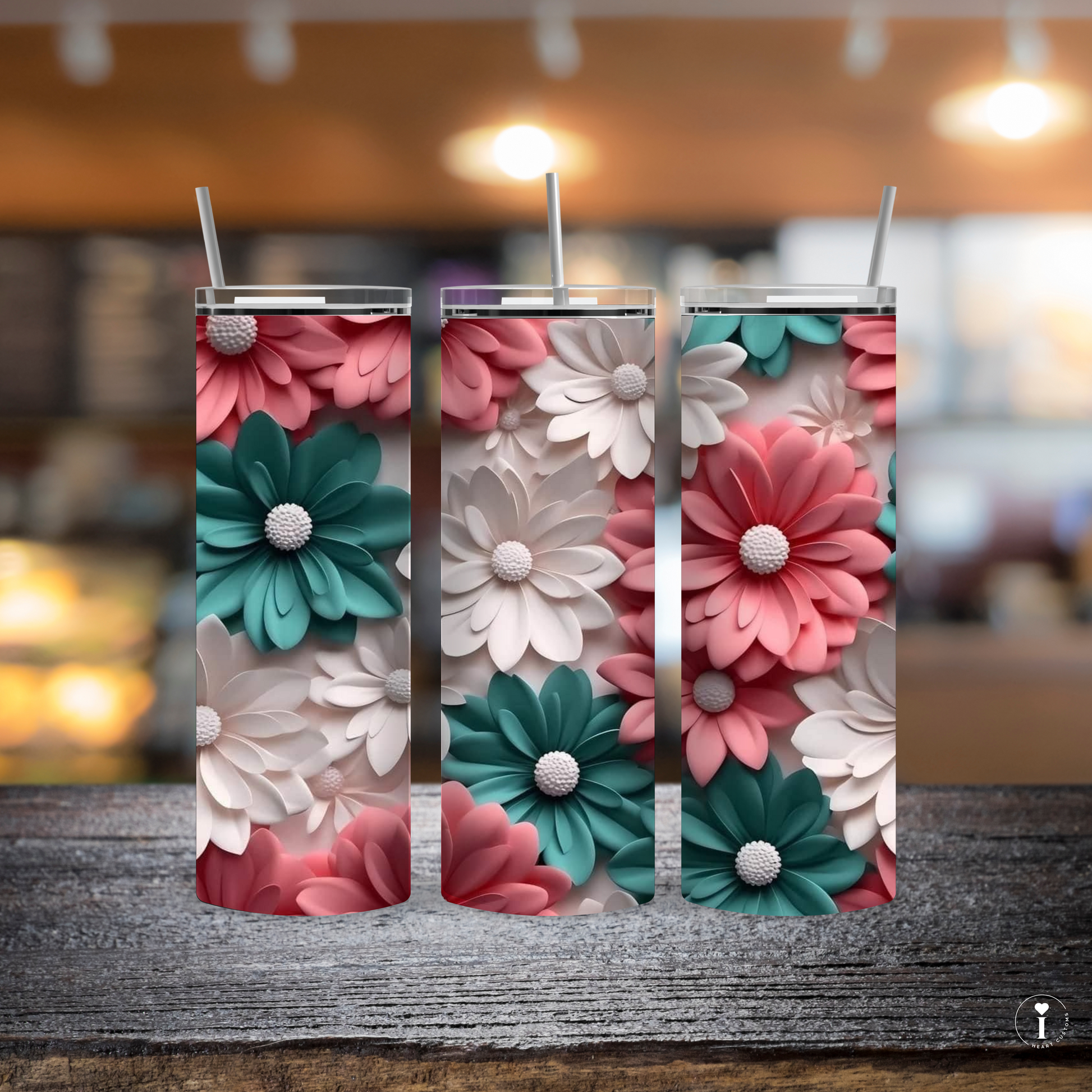 3D Designed Floral Sublimation 20oz Straight Insulated Tumbler