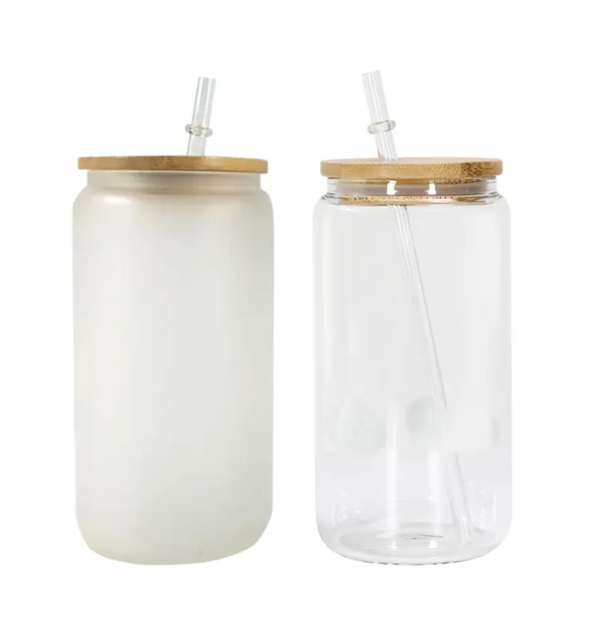 Sublimation/ UV DTF 16 oz Frosted or Clear Glass Tumbler with Bamboo Lid