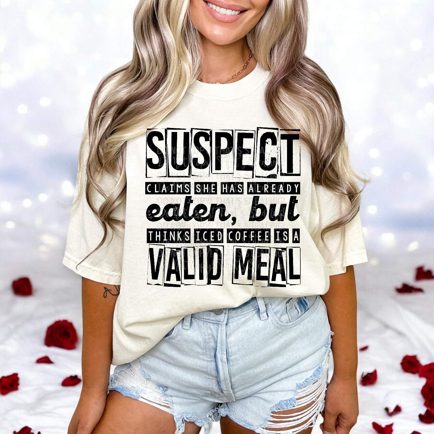 Suspect claims - Already eaten but ice coffee is a valid meal DTF Transfer Film TG124
