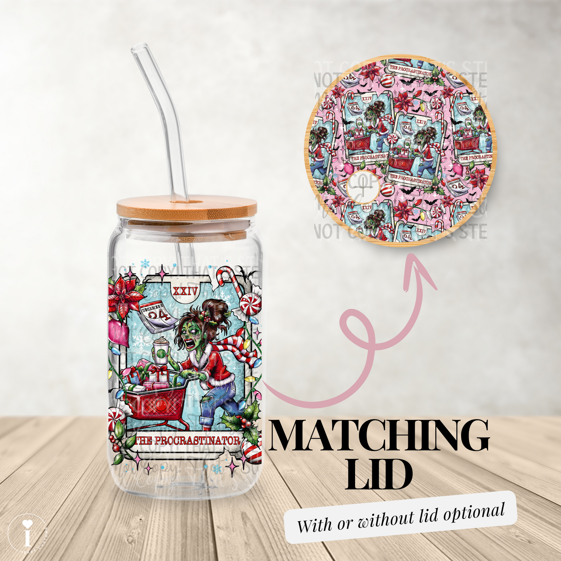 Tarot Card Xmas Exclusive: The Procrastinator - 16oz UV DTF Transfer Film Wrap and Matching Lid G104e