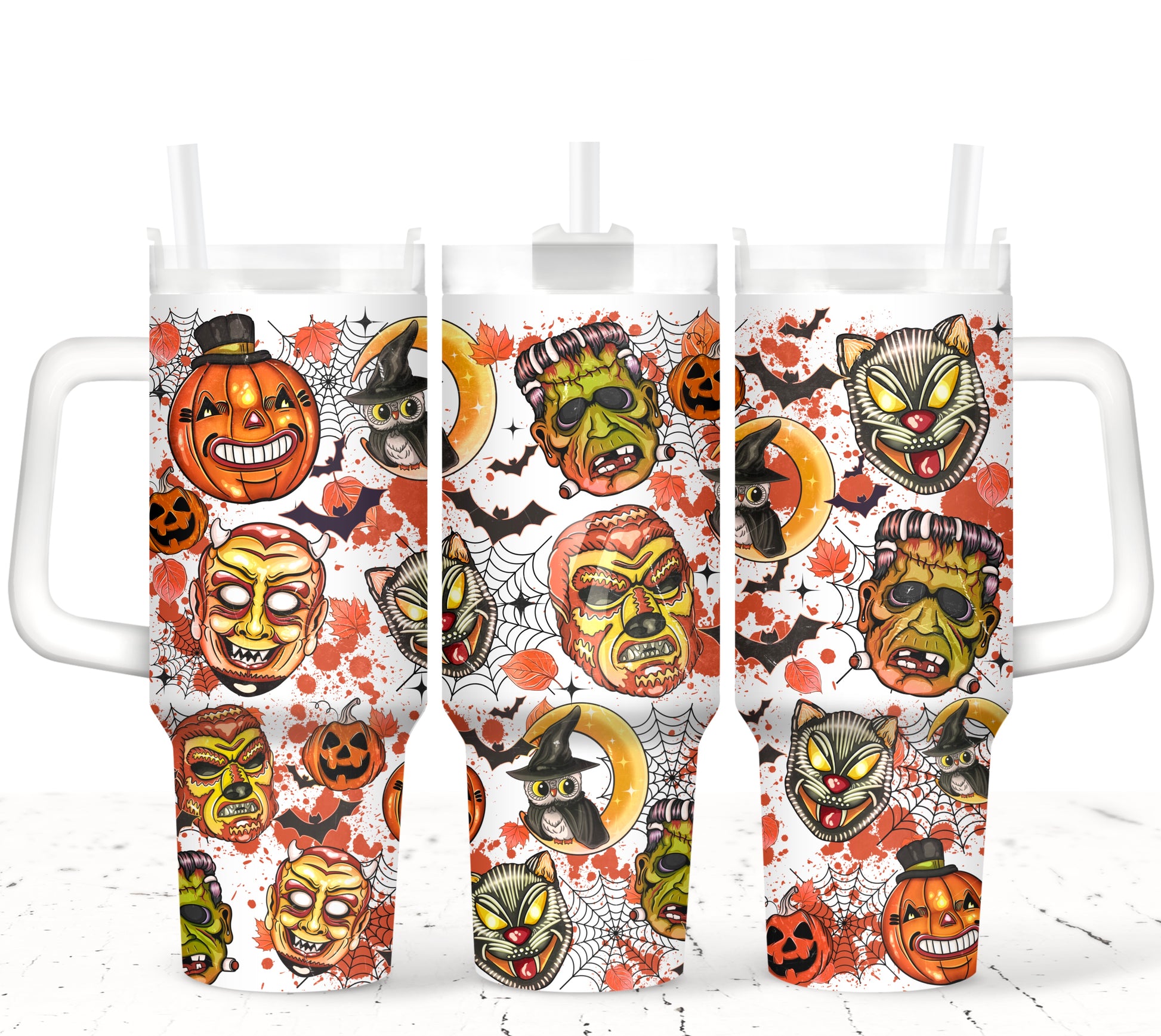 Spooky Halloween Masks - TOP & BOTTOM SET - 40 oz Tumbler UV DTF Transfer Film