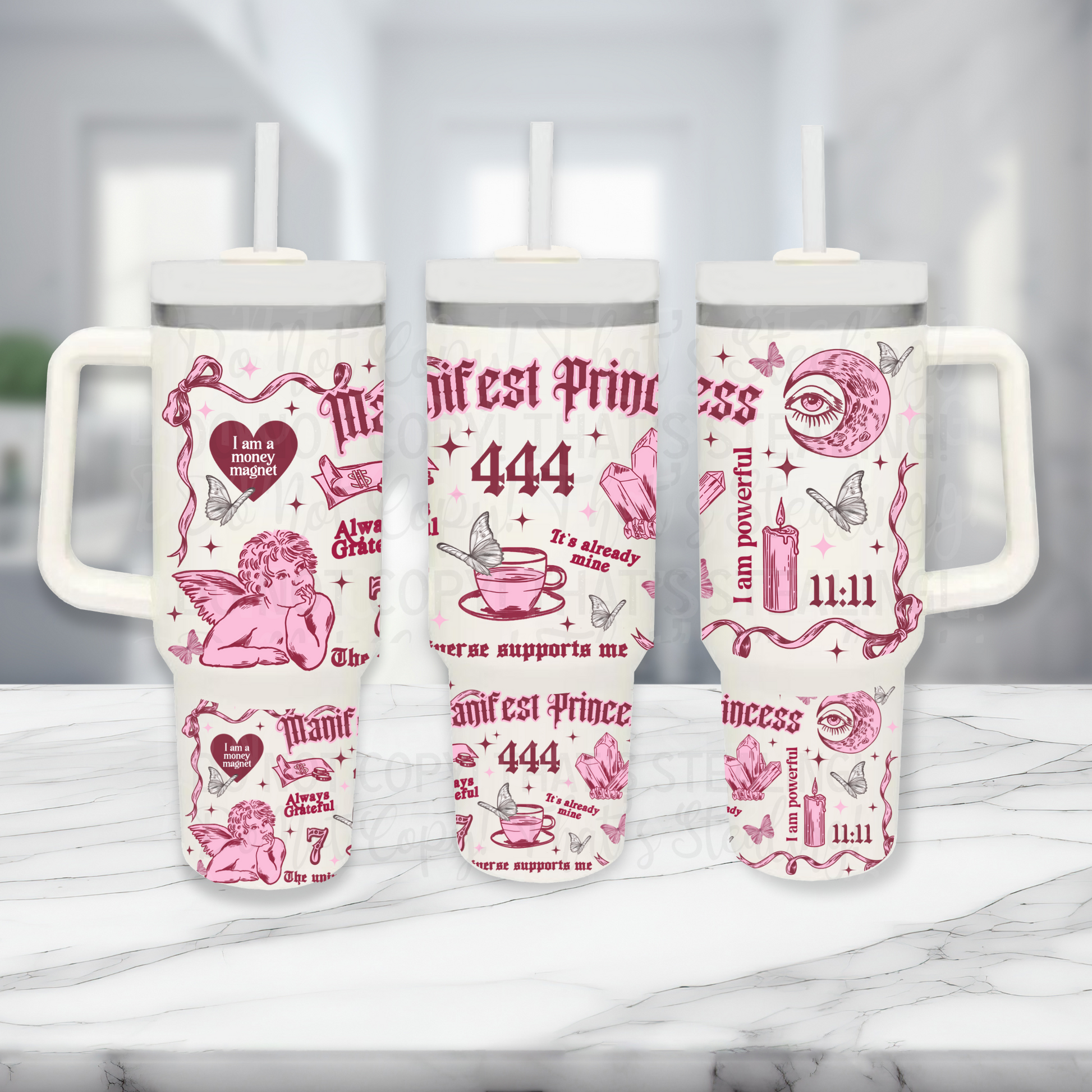 Manifest Princess 444 - TOP & BOTTOM SET - 40 oz Tumbler UV DTF Transfer Film G124