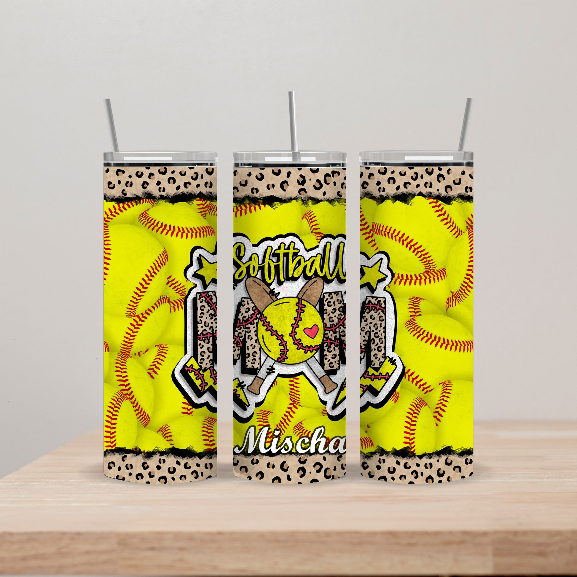 Softball Mom Tumbler with Name 20oz Straight Insulated Tumbler