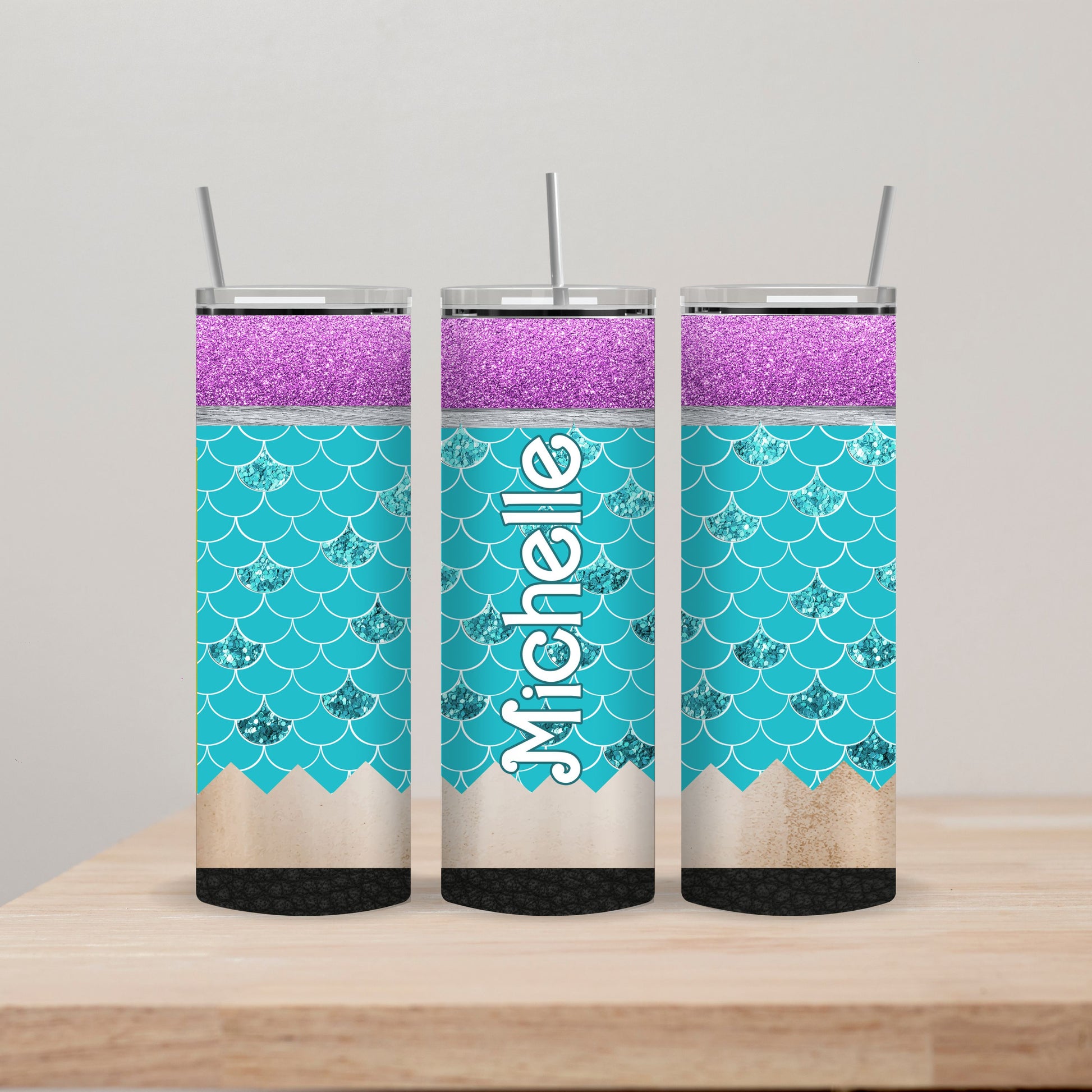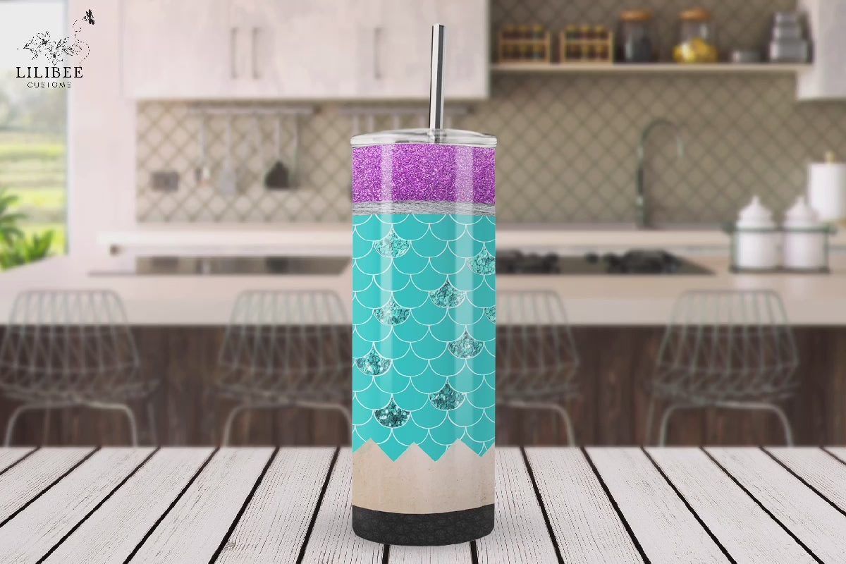 Teal Mermaid Pencil Tumbler with Name 20oz Straight Insulated Tumbler