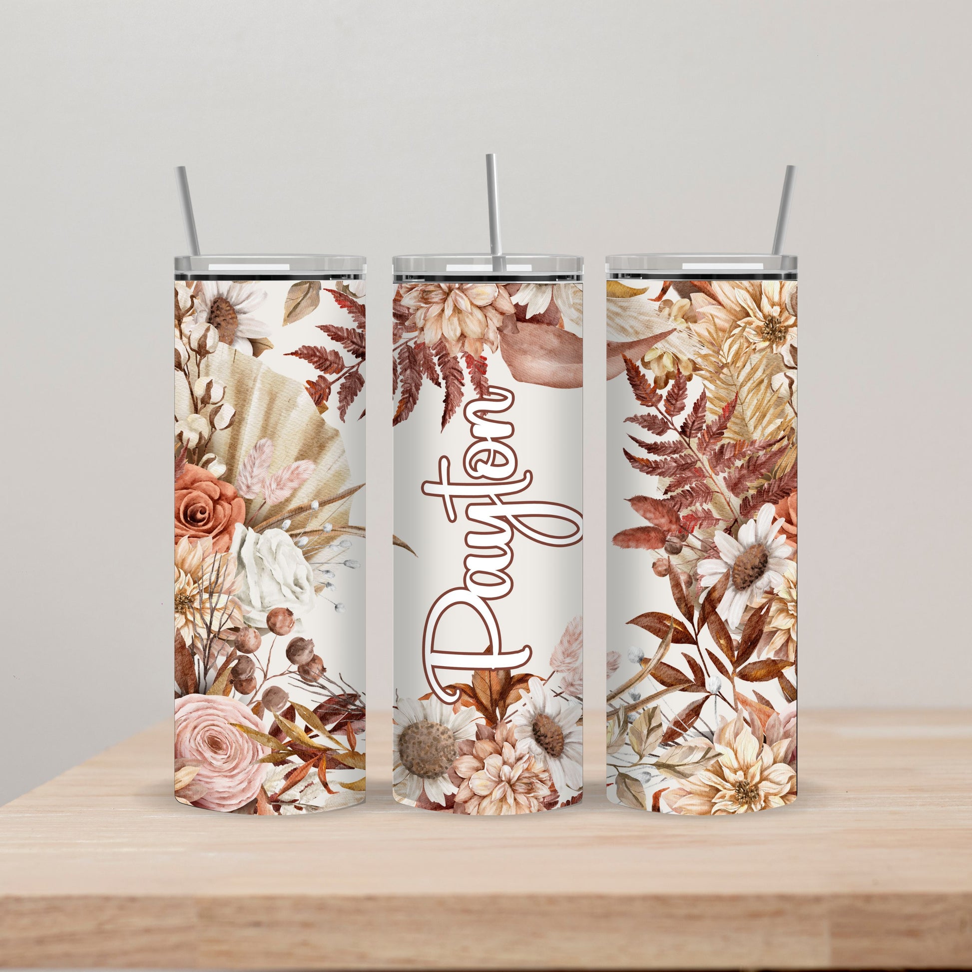 Boho Floral Tumbler with Name 20oz Straight Insulated Tumbler