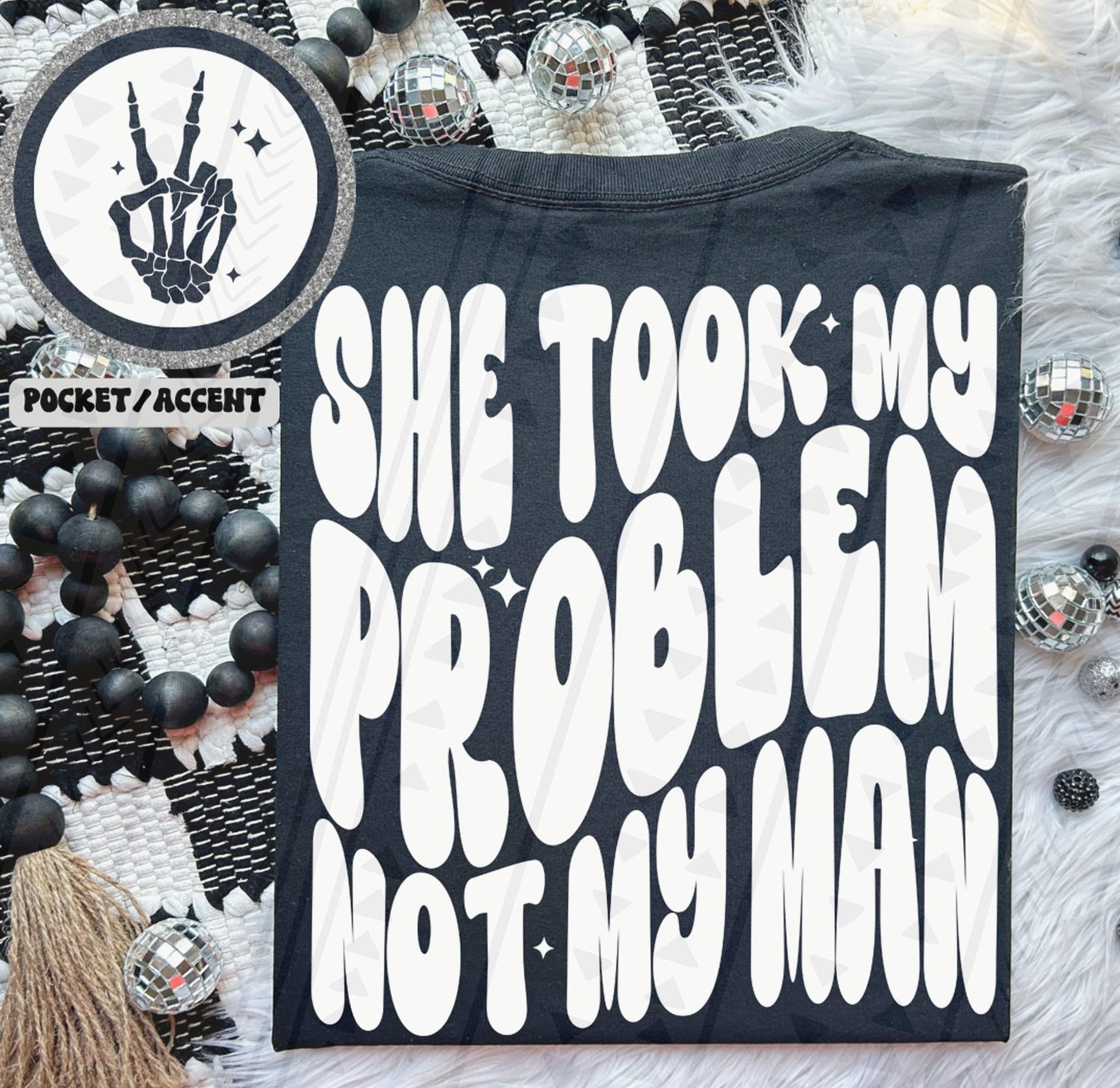 She took my problem not my man - White - with matching front pocket DTF Transfer Film